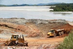 FOTO DE ARCHIVO. Se ve un equipo minero sobre una presa de relaves en la mina de oro de Kibali, provincia de Haut-Uele, República Democrática del Congo. 8 de octubre de 2021. REUTERS/Hereward Holland