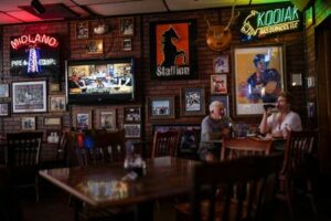 ARCHIV: Die Gäste Eric und Sally Stewart genießen an ihrem freien Tag in Midland, Texas, USA, am 10. Juni 2025 einen Drink in der Bar „The Bar“, einem beliebten Treffpunkt für Arbeiter aus der Öl- und Gasindustrie. REUTERS/Eli Hartman