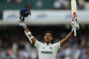Cricket – International Test Match Series – Fifth Test – England v India – Kia Oval, London, Britain – August 2, 2025 India’s Yashasvi Jaiswal celebrates after reaching his century Action Images via Reuters/Paul Childs