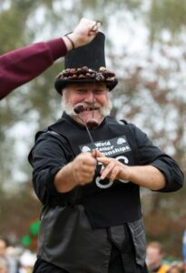 A competitor swings his conker during the first round of the annual World Conker Championships in Southwick, Britain, October 12, 2025. REUTERS/Temilade Adelaja