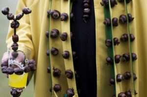 David Jakins, known as ‘King Conker’, holds a drink at the annual World Conker Championships in Southwick, Britain, October 12, 2025. REUTERS/Temilade Adelaja