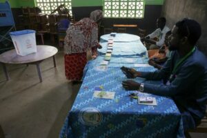 A woman prepares to cast her vote at the polling station of Ecole Maternelle de Foulbere on the day of Cameroon’s presidential election, in Garoua, Cameroon October 12, 2025. REUTERS/Desire Danga Essigue
