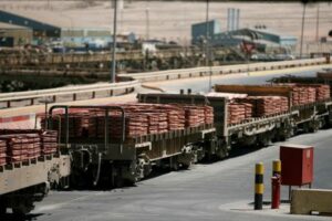 FOTO DE ARCHIVO: Un tren cargado de láminas de cátodos de cobre en la mina Escondida de BHP Billiton, en Antofagasta, Chile. 31 marzo 2008. REUTERS/Iván Alvarado