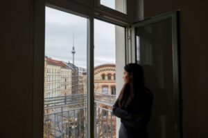 ARCHIV: Anna Hothrath, eine 27-jährige Kundenbetreuerin aus Spanien, schaut aus dem Fenster ihrer Mietwohnung im Bezirk Prenzlauer Berg in Berlin, Deutschland, 9. November 2023. REUTERS/Lisi Niesner