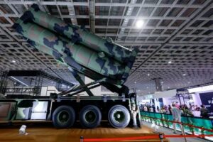 A Chiangkong missile system and its launcher, a new-generation anti-ballistic missile air defense platform developed by Taiwan’s National Chung-Shan Institute of Science and Technology (NCSIST), is displayed during the Taipei Aerospace and Defence Technology Exhibition in Taipei, Taiwan, September 18, 2025. REUTERS/Ann Wang