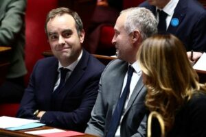 French Prime Minister Sebastien Lecornu is seen in the hemicycle before his first general policy speech in front of the parliament and the new government following by a debate at the National Assembly in Paris, France, October 14, 2025. REUTERS/Gonzalo Fuentes