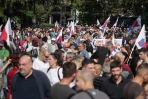 Protesters gather near the Greek parliament, during a one-day strike as parliament debates a government plan to allow employers to extend working hours and other labour reforms, in Athens, Greece, October 14, 2025.REUTERS/Louisa Gouliamaki