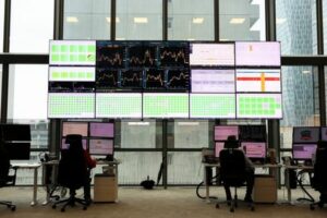 People work at the trading floor of the Euronext stock exchange in the La Defense business district in Paris, France, March 10, 2025. REUTERS/Benoit Tessier