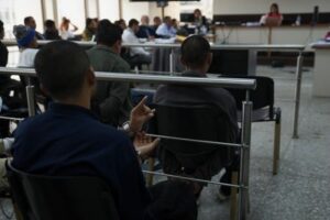 FOTO DE ARCHIVO. Un presunto miembro de la pandilla MS-13, detenido durante operativos policiales contra la extorsión y el crimen organizado, muestra una señal de pandilla mientras comparece ante un tribunal en Ciudad de Guatemala, Guatemala. 2 de octubre de 2025. REUTERS/Cristina Chiquin