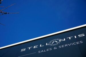 FILE PHOTO: The logo of Stellantis sits outside a “Stellantis and You” sales and services dealership in Nanterre, near Paris, France, February 26, 2025. REUTERS/Sarah Meyssonnier/File Photo