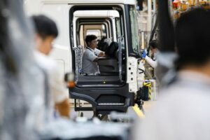 Employees work at Scania’s production line in Rugao October 15, 2025 October 15, 2025 Employees work at Scania’s production line in Rugao, Jiangsu Province, China, October 15, 2025. REUTERS/Go Nakamura