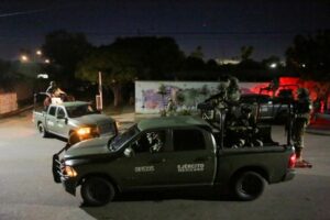 Miembros del ejército mexicano responden al lugar de un ataque improvisado con drones, que las autoridades atribuyeron a un grupo criminal local, afuera de la oficina de la unidad antisecuestro de la fiscalía en Tijuana, México. 15 de octubre de 2025. REUTERS/Jorge Duenes