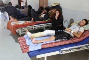 Palestinians injured during the war lie on beds as they receive medical treatment, after a ceasefire between Israel and Hamas in Gaza went into effect, at Nasser Hospital in Khan Younis, southern Gaza Strip October 15, 2025. REUTERS/Ramadan Abed