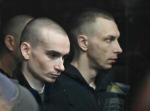 Members of Ukraine’s Aidar Battalion, which is recognised as a terrorist organisation in Russia, stand behind a glass wall in an enclosure for defendants during a court hearing in Rostov-on-Don, Russia October 17, 2025. REUTERS/Sergey Pivovarov