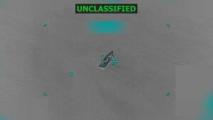 Un barco flota frente a la costa de Venezuela en esta captura de pantalla tomada de un vídeo publicado el 14 de octubre de 2025, antes de lo que el presidente de Estados Unidos, Donald Trump, dijo que era un ataque estadounidense contra un barco sospechoso de tráfico de drogas. Donald Trump via Truth Social/via REUTERS ESTA IMAGEN HA SIDO SUMINISTRADA POR TERCEROS. CRÉDITO OBLIGATORIO. NO ARCHIVOS. Verificación: -Reuters comprobó las imágenes a través de nuestra herramienta de detección de IA y no encontró indicios de manipulación. Sin embargo, la grabación está parcialmente borrosa, por lo que es imposible confirmar si el vídeo está manipulado.
