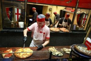 Un trabajador realiza tarea en una pizzería tradicional de Buenos