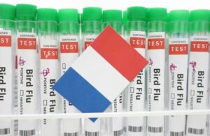 Test tubes labelled “Bird Flu” and a piece of paper in the colours of the French national flag are seen in this picture illustration, January 14, 2023. REUTERS/Dado Ruvic/Illustration