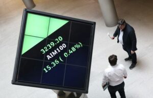 FOTO DE ARCHIVO: Infornación bursátil desplegada en las pantallas de la sede de LSEG (London Stock Exchange Group) en Londres, Reino Unido. 25 abril 2025. REUTERS/Toby Melville