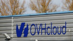 FILE PHOTO: The logo of French cloud computing company OVHcloud is seen on a data-center building in Strasbourg, France, October 13, 2021. REUTERS/Christian Hartmann/File Photo