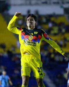 Ramón Juárez festeja el gol de la victoria de América ante Puebla en el torneo mexicano. Estadio Ciudad de los Deportes, Ciudad de México, México. 21 de octubre de 2025.