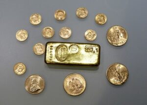 FILE PHOTO: A gold ingot and gold coins are seen in this illustration picture taken November 17, 2017. REUTERS/Eric Gaillard/Illustration/File Photo