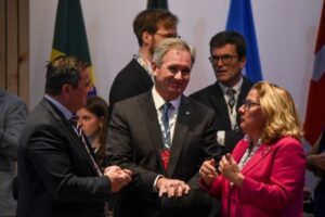 El argentino Pablo Quirno habla con la ministra alemana de Cooperación Económica y Desarrollo, Svenja Schulze, el día de una reunión del grupo de trabajo de la Alianza Global contra el Hambre y la Pobreza en Río de Janeiro, Brasil, 24 de julio de 2024. REUTERS/Tita Barros