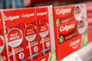 Colgate products are displayed on a shelf in a supermarket in Sarajevo, Bosnia and Herzegovina, October 29, 2024. REUTERS/Dado Ruvic