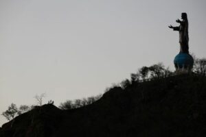 People stand on the hill near Cristo Rei, a statue depicting Jesus Christ, in Dili, East Timor, September 11, 2024. REUTERS/Willy Kurniawan