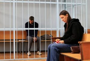 French cyclist Sofiane Sehili, who was reportedly arrested after twice attempting to cross the Russian border from China while trying to break the world record for the fastest cycle crossing of the Eurasian landmass, from Lisbon to Vladivostok, sits inside an enclosure for defendants before a court hearing in the far eastern settlement of Pogranichniy, Russia, October 23, 2025. REUTERS/Tatiana Meel