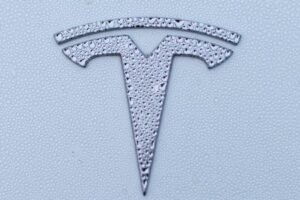 FILE PHOTO: Tesla logo shown on Model Y vehicle in
