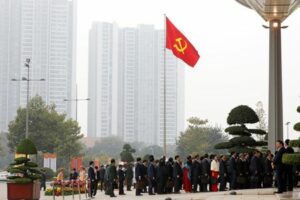 Delegates arrive under a communist flag for the opening ceremony of the 13th national congress of the communist party of Vietnam at the National Convention Center in Hanoi, Vietnam January 26, 2021. REUTERS/Kham/File Photo