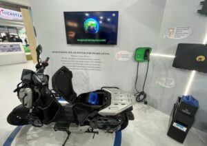 FILE PHOTO: Reliance Industries showcases its swappable and multipurpose battery storage technology for electric vehicles (EVs) at an event in Greater Noida, India October 4, 2023. REUTERS/Arpan Chaturvedi/File Photo