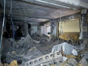 An apartment destroyed during what local authorities called a Ukrainian drone attack in the course of the Russia-Ukraine conflict, in Krasnogorsk outside Moscow, Russia, October 24, 2025. Governor of Moscow Region Andrei Vorobyov via Telegram/Handout via REUTERS