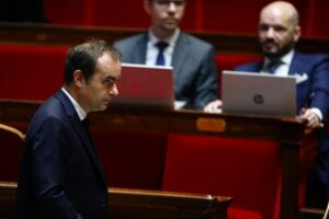 French Prime Minister Sebastien Lecornu leaves after delivering a speech during the first general discussion on a draft 2026 Budget Bill (first part – PLF 2026) during a session at the National Assembly in Paris, France, October 24, 2025. REUTERS/Sarah Meyssonnier