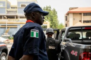FILE PHOTO: A member of Nigerian security forces looks on before the court hearing of the leader of the proscribed Indigenous People of Biafra (IPOB) Nnamdi Kanu, in Abuja, Nigeria, March 19, 2024. REUTERS/Marvellous Durowaiye/File Photo