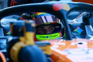 Oscar Piastri se prepara para la segunda práctica del Gran Premio de la Ciudad de México. Autódromo Hermanos Rodríguez, Ciudad de México, México. 24 de octubre de 2025.