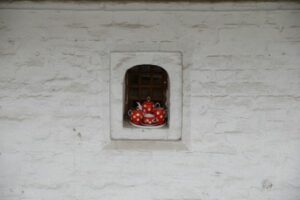 Tea set is seen in window of ancient chambers of