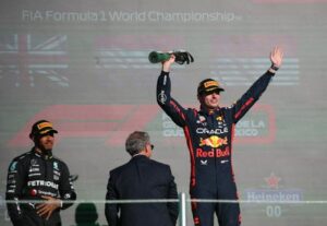 Foto de archivo de Max Verstappen celebrando con el trofeo tras ganar el Gran Premio de la Ciudad de México en 2023. Autódromo Hermanos Rodríguez, Ciudad de México, México. 29 de octubre de 2023.