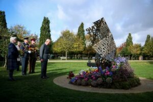 El rey Carlos de Inglaterra asiste a la ceremonia de Dedicación de las Fuerzas Armadas LGBTQ+ en el National Memorial Arboretum en Alrewas, Staffordshire, Gran Bretaña. 27 de octubre de 2025. REUTERS/Phil Noble/Pool