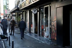 People walk past a demolished Turkish owned restaurant in downtown after, a man was stabbed and wounded in a late-night incident in Podgorica, Montenegro, October 27, 2025. REUTERS/Stevo Vasiljevic