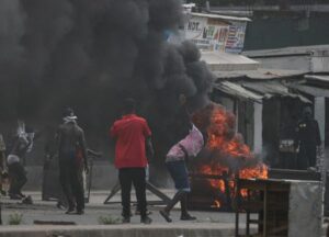 Supporters of Cameroon presidential candidate Issa Tchiroma clash with security forces after the Constitutional Council declared President Paul Biya the winner of the October 12 presidential election, in Douala, Cameroon, October 27, 2025. REUTERS/Zohra Bensemra