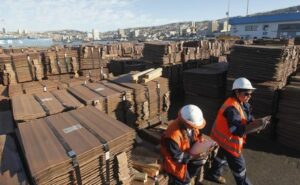 FOTO DE ARCHIVO: Trabajadores portuarios revisan un cargamento de cobre