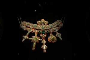 A collar set with more than 1,500 precious stones from the “Treasure of San Gennaro”, one of the world’s richest collections of sacred art, is displayed at the Museum of the Treasure of San Gennaro in Naples, Italy October 23, 2025. REUTERS/Ciro De Luca