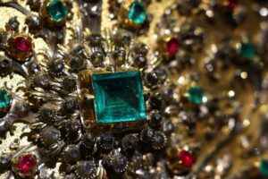 An artefact with gemstones, catalogued as part of a gemological mapping project to identify the “DNA” of each stone in the “Treasure of San Gennaro” collection, is displayed at the Museum of the Treasure of San Gennaro in Naples, Italy October 23, 2025. REUTERS/Ciro De Luca