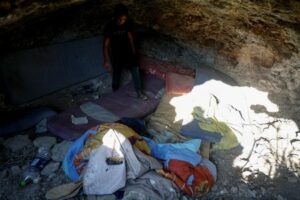 A boy walks at the site where Israeli forces killed three Palestinians, near Jenin, in the Israeli occupied West Bank October 28, 2025. REUTERS/Raneen Sawafta