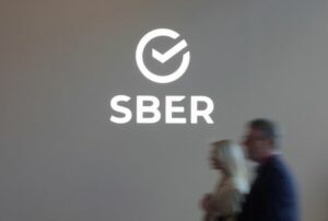 A view shows a board with the logo of Sber (PJSC Sberbank) at the St. Petersburg International Economic Forum (SPIEF) in Saint Petersburg, Russia June 5, 2024. REUTERS/Anton Vaganov
