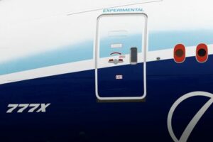 A Boeing 777-9, a variant of the 777X, is pictured before a flying display at the 54th International Paris Airshow at Le Bourget Airport near Paris, France, June 20, 2023. REUTERS/Benoit Tessier