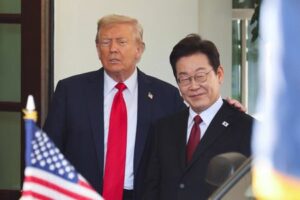 U.S. President Donald Trump welcomes South Korean President Lee Jae Myung at the White House in Washington, D.C., U.S., August 25, 2025. REUTERS/Jonathan Ernst