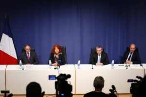 Paris prosecutor Laure Beccuau speaks next to Pascal Carreau, Head of the BRB (Brigade for the Repression of Banditry), Jean-Baptiste Felicite, Head of the OCBC, Central Office for Combating Trafficking in Cultural Goods, and Fabrice Gardon, Director of the Judicial Police at the Paris Police Prefec during a press conference about the investigation into the Louvre Museum robbery in Paris, France, October 29, 2025. REUTERS/Abdul Saboor