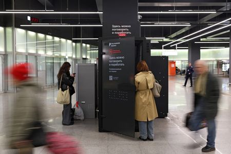 MOSCOW (Reuters) -The Moscow Metro has installed sound-proofed booths at two busy stations to enable people to make pressing calls unhindered by the hubbub of fellow passengers rushing past or by the screech of wheels on train tracks.